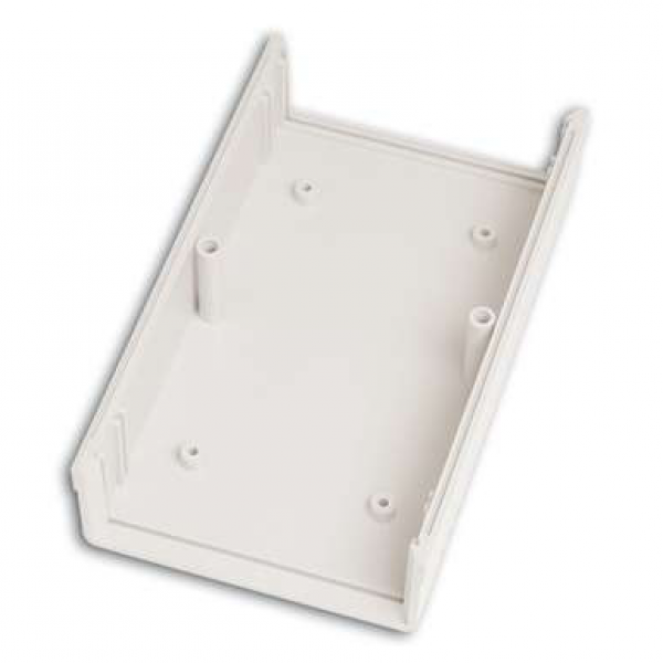Kunststoffgehäuse mit zwei 1 mm starken Deckplatten aus Aluminium. Jede Hälfte hat integrierte Führungen und Montagepfeiler für PCB. Matte Oberfläche. Montage mit nur 2 Schrauben. Mit Plastikplatten erhältlich (Mod. PPD1. PPD2, PPD3).
