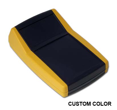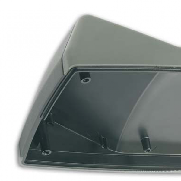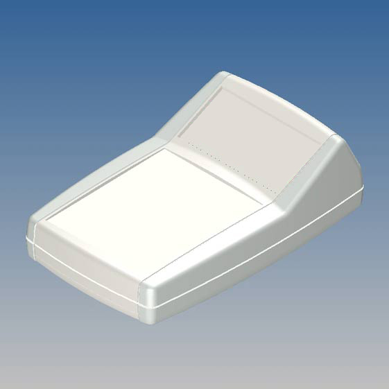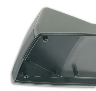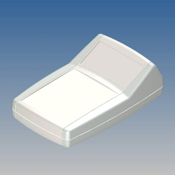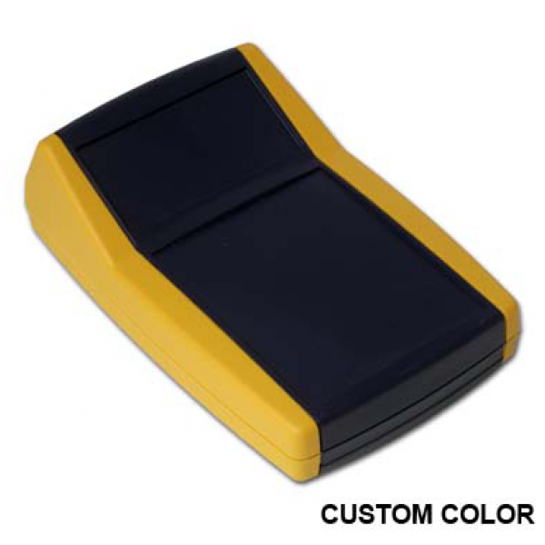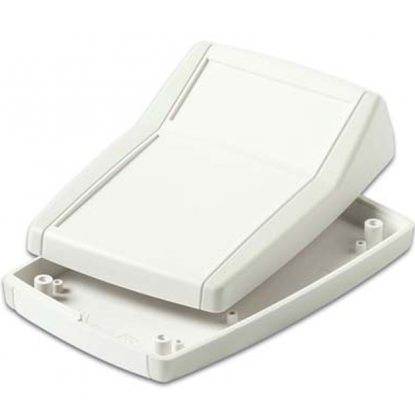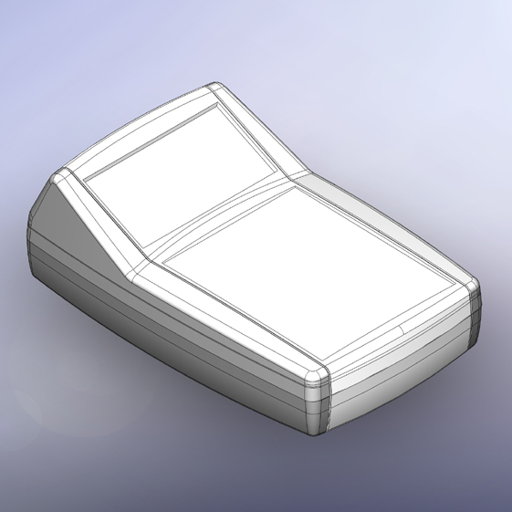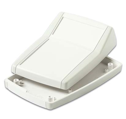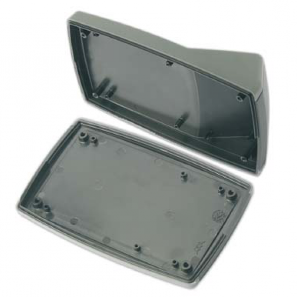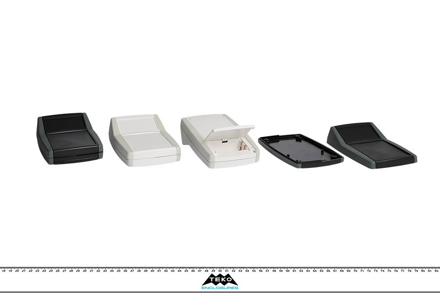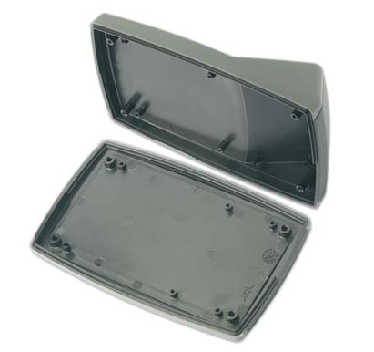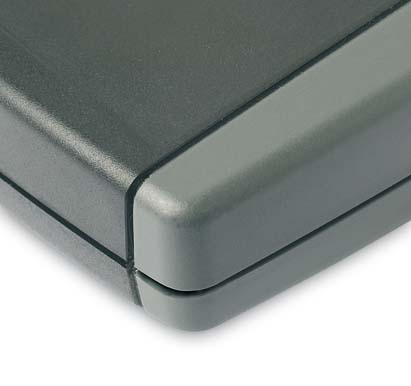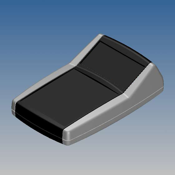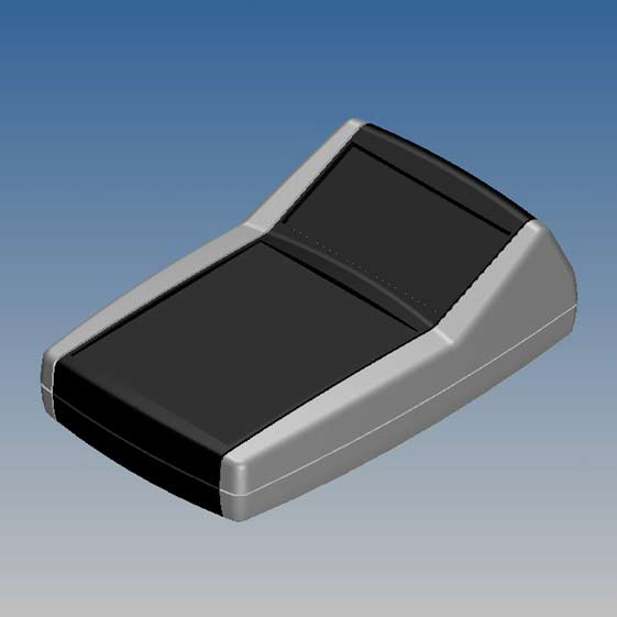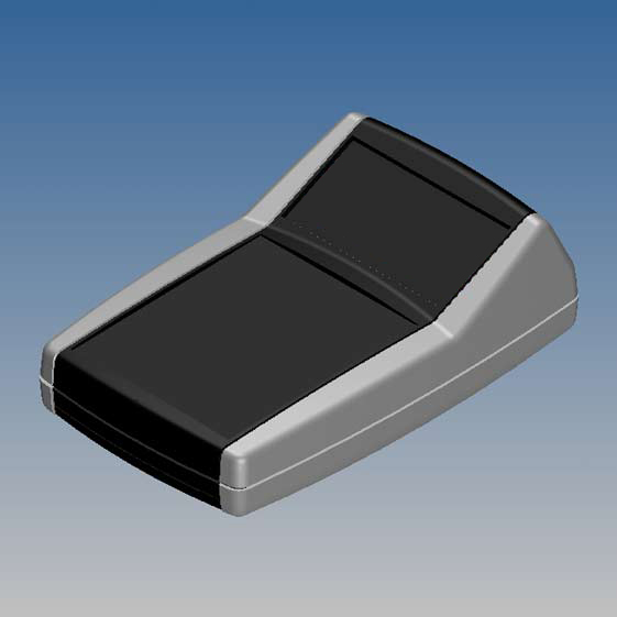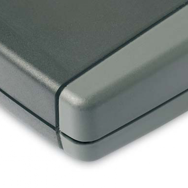 ABS Handgehäuse mit soften Elastomerekonturen (TPU). Matte Oberfläche, eingelassener Bedienungsplatz zur Aufnahme einer Tastatur oder eines Displays. Die Modelle mit „B“ haben ein Fach für zwei 1,5V Mignon-Zelle (AA) oder eine 9V Batterie (PP3). Die Modelle mit „B2“ haben ein Fach für vier 1,5V Mignon-Zelle (AA) oder zwei 9V Batterien (PP3). Montage mit vier Schrauben. Zwei Farbenkombinationen: Schwarz RAL 9004/Dunkelgrau RAL 7012 - Weiß RAL 9002/Hellgrau RAL 9018.