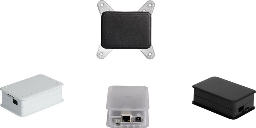 Stable and functional Beaglebone Black-case featuring a square shape and a modern design that guarantees a perfect fitting of top and bottom to protect the board. Molded in Flame retardant material (ABS+PC), it is perfect for both personal and commercial projects. Three colors (black, white, transparent). Brigth LED light-guide on the front. Aeration slots on the perimeter of the base. Snap-on closing. Compatible with Vesa mount adapter (RPI-VESA).
