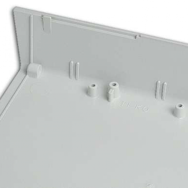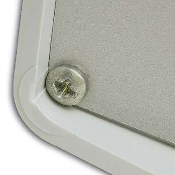ABS enclosures with a vented cover and base for aeration. Front and rear 1 mm aluminium panels. Each half-shell has integral PCB guides and mounting studs. Matt surface finish. Closing by eight screws.