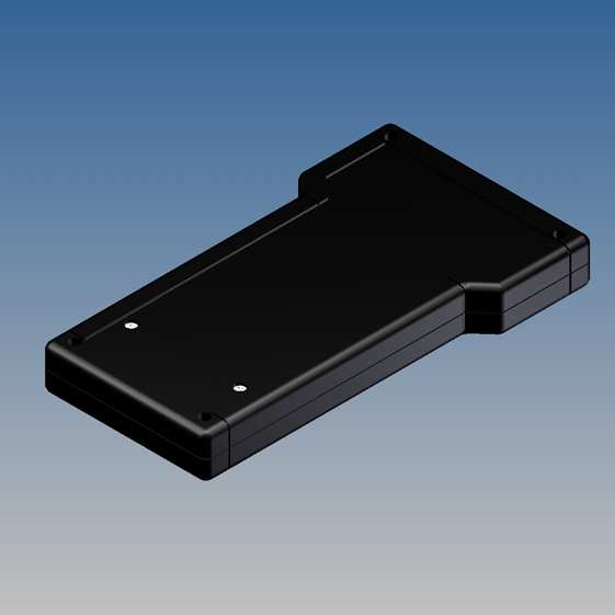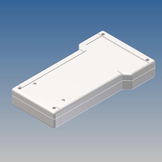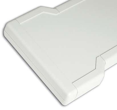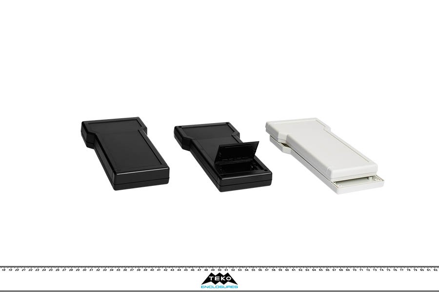ABS enclosures with a recessed operating area for membrane keyboards. Base and cover have integral PCB guides and mounting studs. Matt surface finish. The models with “B” have a battery compartment for two mignon-cells 1.5V or one flat battery 9V. The models with “K” are able to accept the IP65 sealing kit. Closing by four screws.