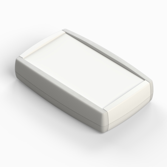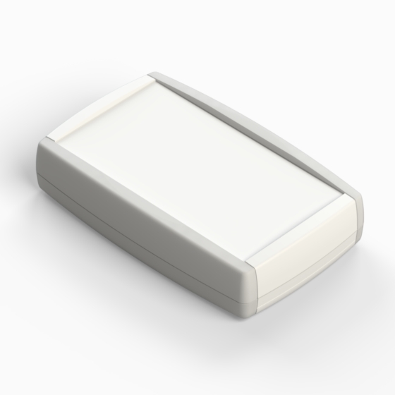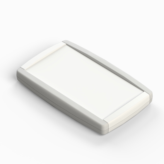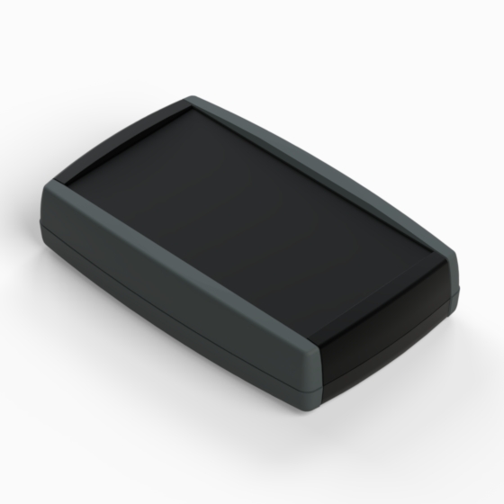 ABS enclosures with new soft-touch contoured shape. By utilising multi-shot moulding technique, Teknet features an ergonomic design of elastomer grips (TPU) on the side of the case. The models with “-B” have a battery compartment for two 1.5V mignon-cells (AA) or one 9V flat battery (PP3). The models with “-B2” have a battery compartment for four mignon cells 1,5V (AA) or two flat batteries 9V (PP3). Matt surface finish. Closing by four screws. Upon request aluminium panel “APTB”, Keypad membrane “M” or “MW” (with transparent display area).