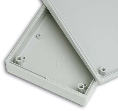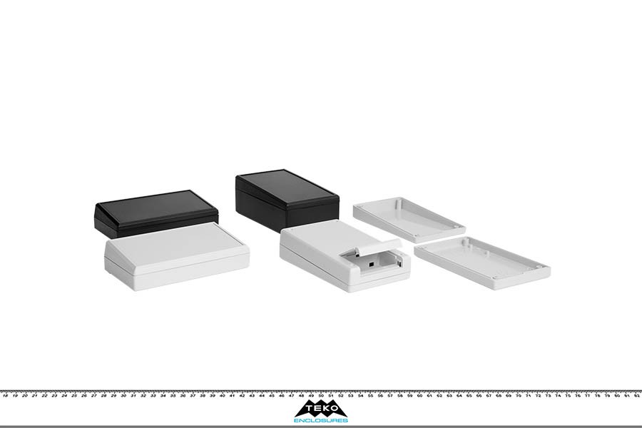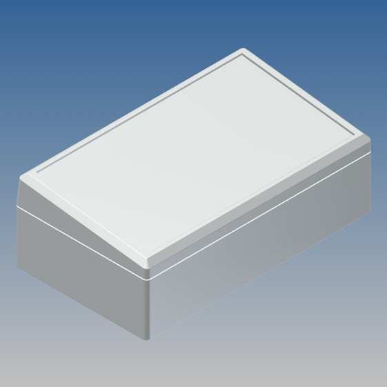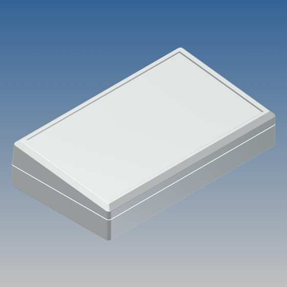 ABS enclosures with inclined cover. Matt surfaces finish. The base has integral PCB mounting studs. The models with “-B” have a 9V battery compartment with snap-on cover. Closing by four screws. Upon request ABS mounting tabs (Mod. MT1), Anodised aluminium panel (Mod. APTB).