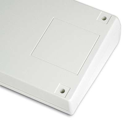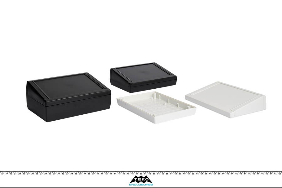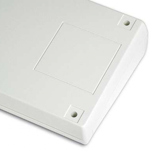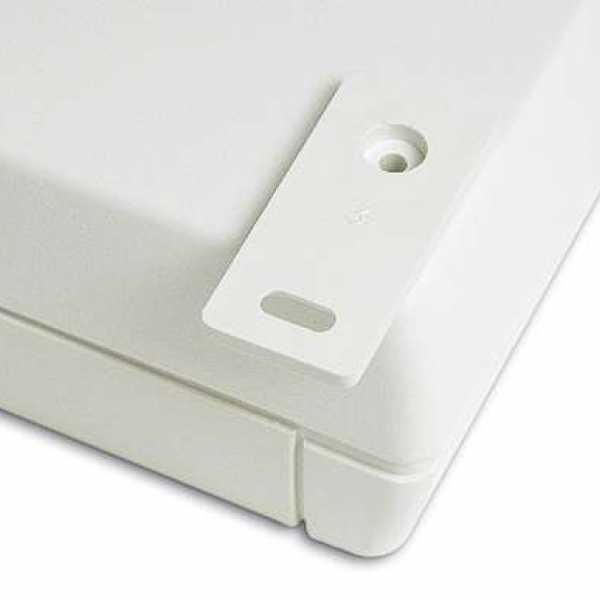 ABS enclosures with a 1.8 mm recessed area suitable for a keypad membrane or an aluminium panel. Base and cover have integral PCB guides (Eurocard 100 x 160 mm) and mounting studs. Matt surface finish. The models with “KK” have an IP65 sealing kit. Closing by four screws. Upon request aluminium panel (Mod. APTK), ABS wall mounting tabs (Mod. MT2).
