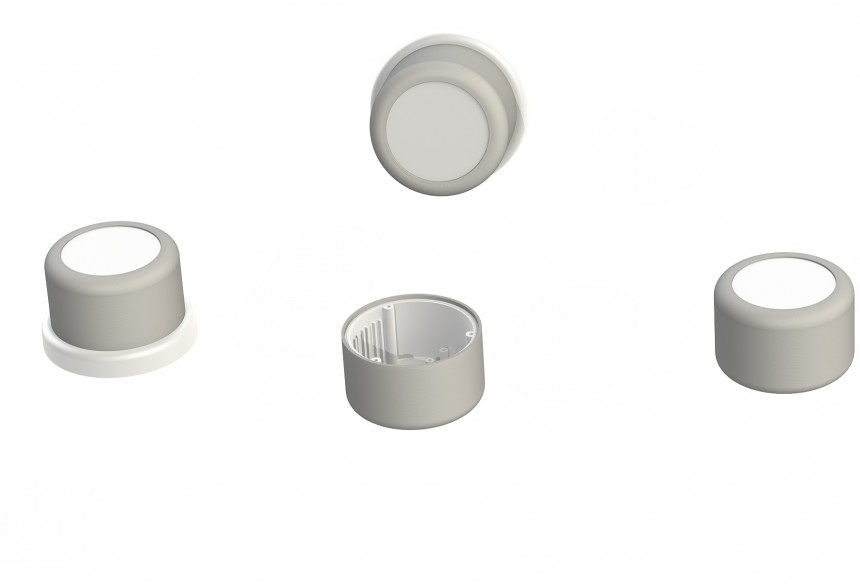 Design contemporaneo e forma arrotondata per IO-TEK, contenitore in bi-componente espressamente dedicato al settore dell' IoT.