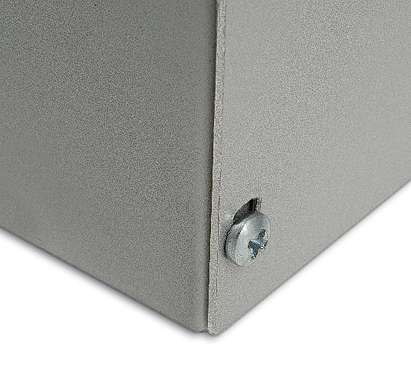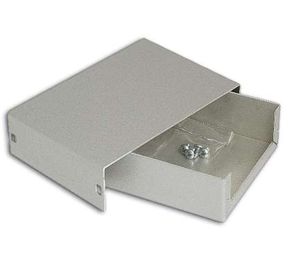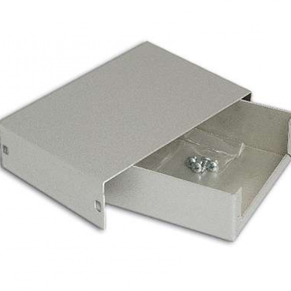Contenitori composti da fondo e coperchio in alluminio metallizzato di colore argento. Assemblaggio facile e veloce con chiusura a quattro viti.