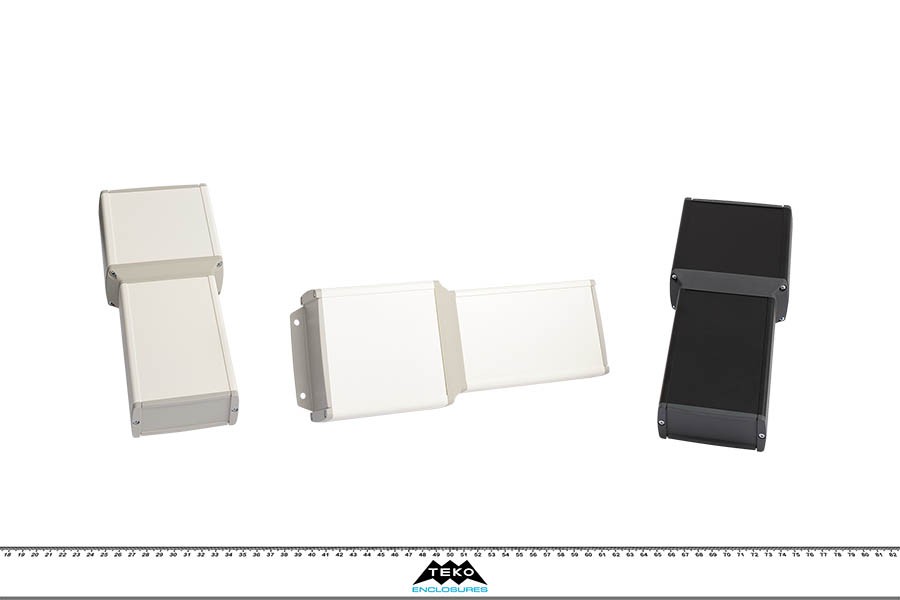 Contenitori in alluminio estruso con verniciatura esterna di elevato standard qualitativo, progettati per strumenti palmari. Alloggiamenti per tastiere a membrana. All’interno sono presenti guide per PCB. I modelli contrassegnati con “-B” sono dotati di vano porta-batteria per due stilo da 1,5V o una pila da 9V. Chiusura con 12 viti.