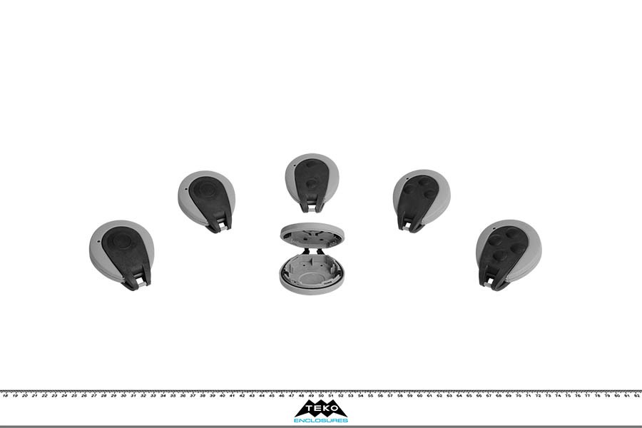 Piccolo contenitore ergonomico dal design innovativo, prodotto utilizzando la tecnica del costampaggio, raggiunge il grado di protezione IP65. Disponibile nelle versioni da uno a quattro tasti. Nel fondo sono presenti punti di fissaggio per PCB. Chiusura con due viti. Colori: combinazione di due colori Grigio scuro RAL 7046 / Nero RAL 9004. Applicazioni: trasmettitori, sistemi di sicurezza, domotica.
