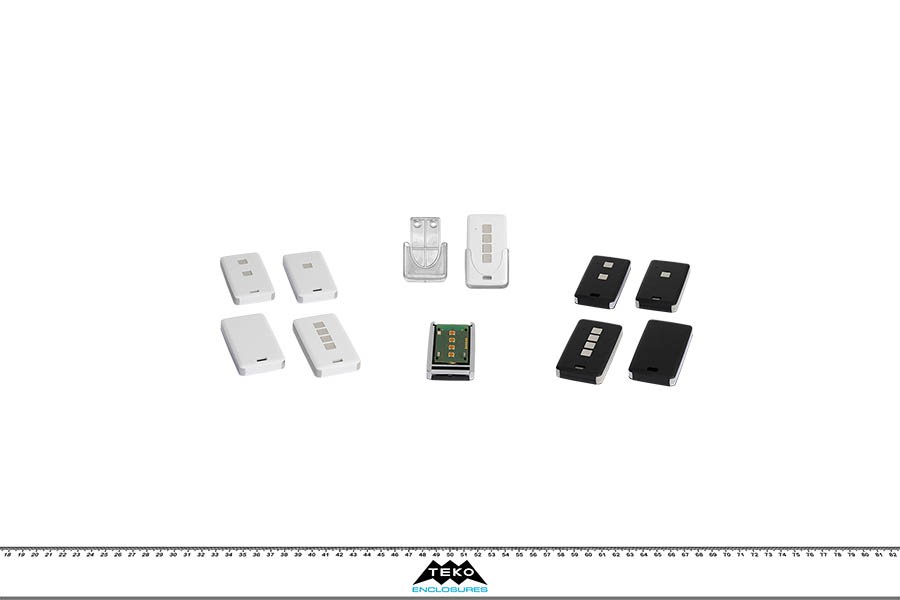 Estetica moderna per questa serie di contenitori per telecomando con angoli arrotondati, disponibili in versione compatta (13120) e in combinazione di pulsanti da uno a quattro (13121, 13122, 13124). All’interno sono presenti colonnette per il fissaggio di circuiti stampati. Due versioni di colore: bianco / grigio chiaro e nero / grigio chiaro. Anello protettivo in plastica o metallo cromato lucido. Foro per LED sul semiguscio superiore. Chiusura con una vite. Adatto per inserimento di pile a bottone e portabatterie AB2032.