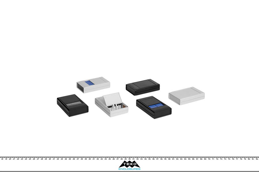 Contenitore in ABS con superfici opache. All’interno sono presenti dei punti di fissaggio per PCB. Alloggiamento per batteria 9V o per due batterie stilo 1.5V con chiusura a slitta. I modelli “SQ1-IR” e “SQ124-IR” hanno un pannello frontale permeabile ai raggi infrarossi. Il modello “SQ124” è dotato di un kit da uno, due o quattro pulsanti blu. I modelli “SQ11” e “SQ11-IR” hanno un’area ribassata per tastiera a membrana. Chiusura a tre viti. Disponibile su richiesta connettore a clip per batteria 9V (Mod. AB9), distanziale adesivo per batteria (Mod. DSA).