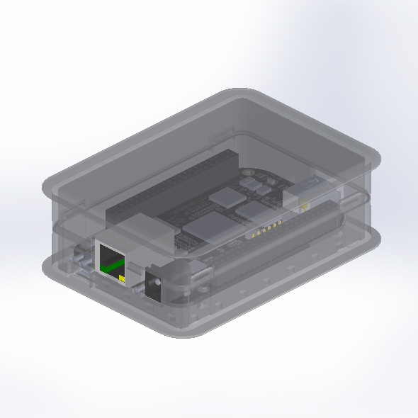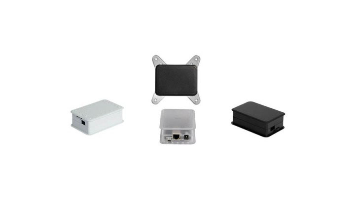 Contenitore per Beaglebone-Black stabile e funzionale, dalla forma squadrata e dal design moderno, che garantisce un perfetto assemblaggio di fondo e coperchio a protezione della scheda. Stampato in materiale autoestinguente (ABS + PC), è perfetto sia per uso personale che per impiego professionale. Disponibile in tre colori (nero, bianco, trasparente). Guide luminose a LED sulla parte anteriore. Fessure di aerazione sul perimetro della base. Chiusura snap-on. Accessori: Vesa mount adapter (RPI-VESA).