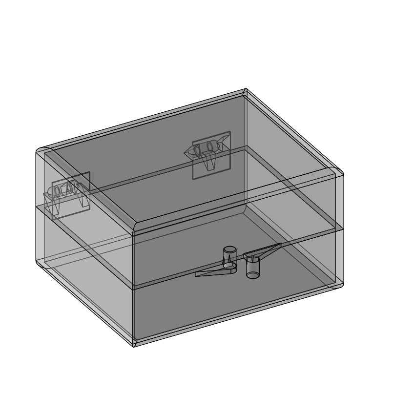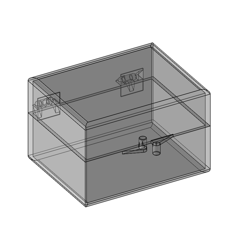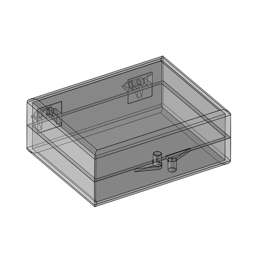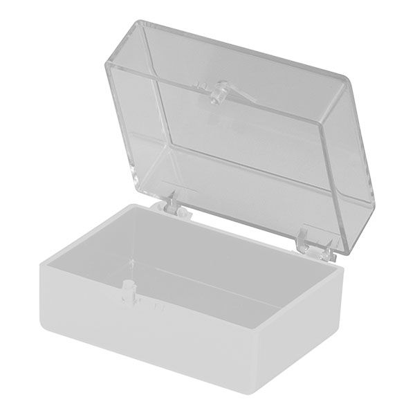Contenitori in polistirolo con superfici lucide di piccole dimensioni, composto da fondo e coperchio trasparente. Utile per contenere e selezionare piccoli oggetti.
