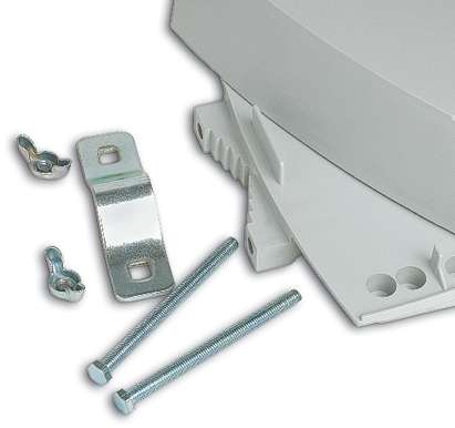 Contenitori in ABS con superfici opache. Montaggio senza uso di viti. In dotazione staffa metallica zincata per l’installazione a palo.